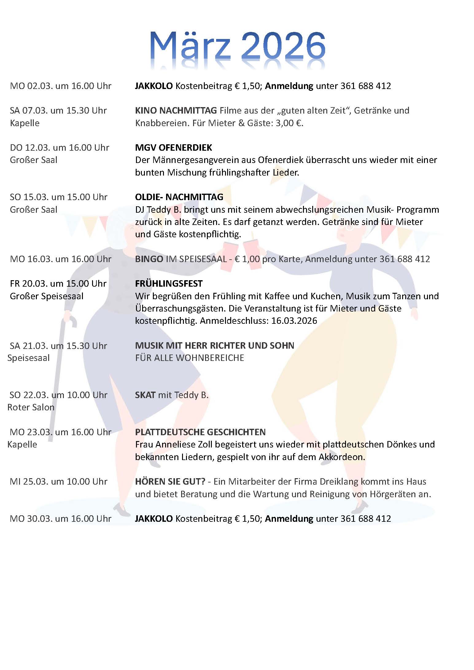 OKTOBER TERMINE FÜR DIE BEWOHNER